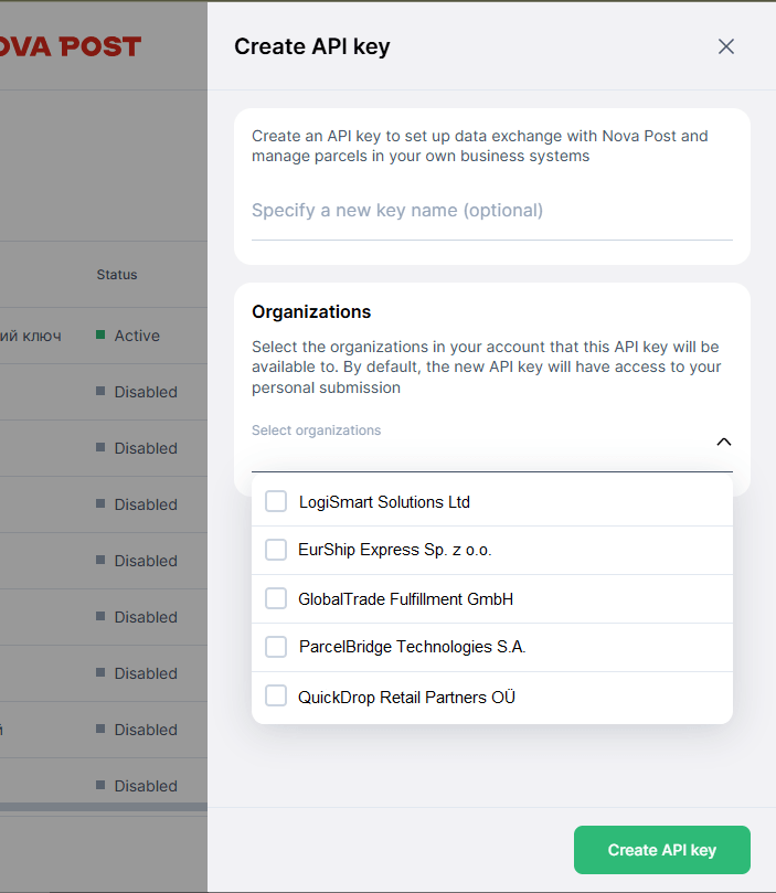 - 2Створіть API-ключ у кабінеті My Nova Post